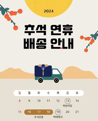 안녕하세요 럭키특송입니다 9월 16(월)~18일(수), 그에 앞서 9월 14일(토) 부터 18일까지 약 5일동안 휴일입니다 이에 앞서, 특송 요청 상품을 보내주시는건 괜찮으나, 온도에 민간한 식품, 부패 또는 변질될 소지가 있는 음식 등은 미리 보내지 말아주시기 바랍니다. 평일의 경우는 빠른 접수와 냉장/냉동창고 보관이 가능하나, 긴 추석연휴로 인해 접수보관이 불가능합니다. 이에 대한 책임은 저희가 질수가 없으니 유의 및 양해 부탁드립니다. 다가오는 추석 모두모두 행복한 휴일 되시기 바랍니다. 늘 저희 이음나무 럭키특송을 이용해주셔서 너무 감사합니다^^ |