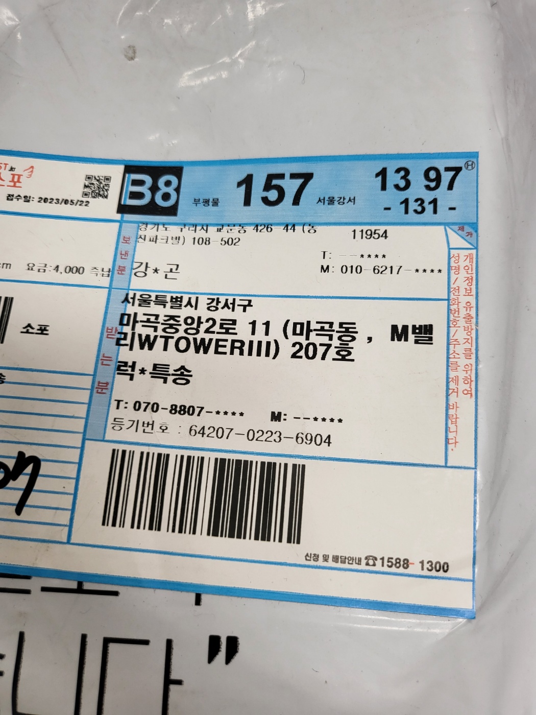 우체국 택배 64207-0223-6904 문의는 럭키특송 채널로 부탁드립니다.